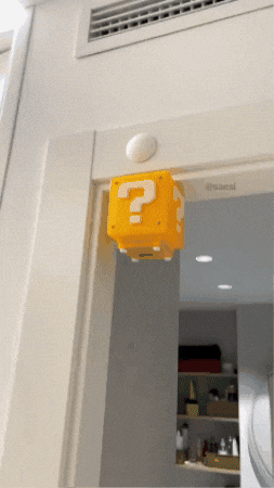 Lámpara LED recargable con forma del clásico cubo de Mario Bros, que ilumina y reproduce sonidos retro del videojuego al encenderse y apagarse, ideal para fanáticos del mundo gamer.